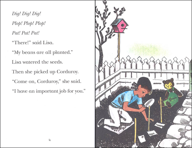 In Corduroy's Garden, Lisa leaves Corduroy to keep watch over her newly planted seeds. But when a puppy digs up the garden, it's up to Corduroy to save the day.