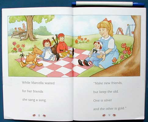 Marcella teaches Raggedy Ann and Raggedy Andy the fun of making new friends and the importance of keeping old ones.