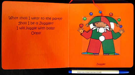 Activity board book with a double sided figure (boy and girl) attached. The figure slips into an acetate pocket on each page, transforming the child into any number of objects or people. Allows you to slip the figure into the acetate pocket to magically transform the boy and girl ready for a party. The double-sided figure helps to combat gender stereotypes. |
