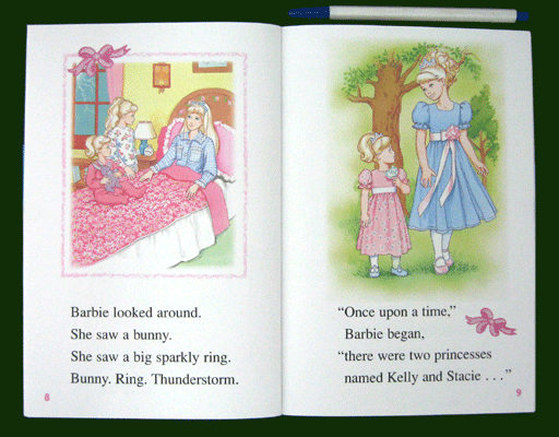 Mile 2 books offer word play and pattern stories to keep beginners hooked, and 2-3 lines of text per page to keep them challenged., , During a thunderstorm, Barbie tells her frightened sisters, Kelly and Stacie, a story through ideas she gets by looking at different objects in her room. Through this story, Barbie takes her sisters away on a magical adventure that is sure to please any Barbie fan. , ,
