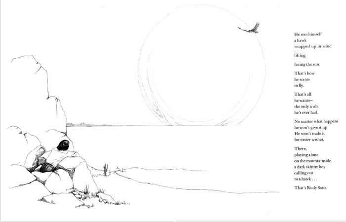 Rudy's only dream is to fly like a hawk over Santos Mountain, and in an unusual way he makes his dream come true. "A sharp, fleeting dream in the sun--and Baylor's controlled lift and flow carries it off."--Kirkus Reviews. Caldecott Honor Book; ALA Notable Children's Book.
