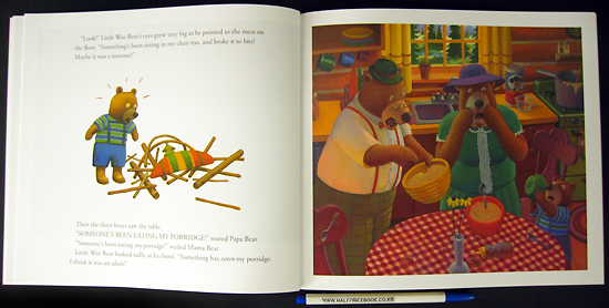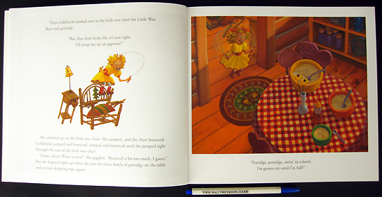 Papa Bear, Mama Bear, and Little Wee Bear go out for a morning walk, hoping by the time they get home their porridge will cool to the perfect temperature. But they don¡¯t realize a jump-roping, curly-haired terror named Goldilocks is on the way. Things are about to get messy before the Bear family has a chance to eat their porridge...