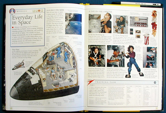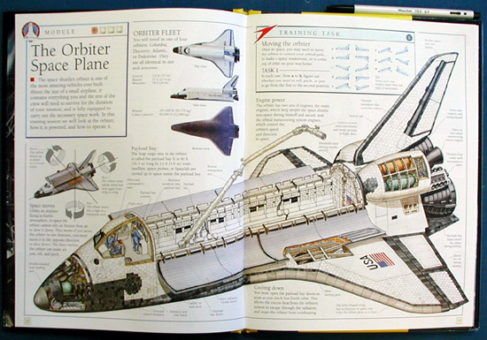 An exciting new way to explore space. You have been selected to train as an astronaut and fly on a space shuttle mission. Our four instructors will prepare you for the job. Meet the other members of the crew. Find out the difficulties and the fun of living in a weightless environment. Learn how to maneuver the orbiter in space. discover how to deploy a satellite. Use the manned maneuvering unit to carry out extravehicular activity. Impressive, easy-to-make 3-D space shuttle model. Pull-out and life-the-flap sections show how the shuttle works and how it is used. |