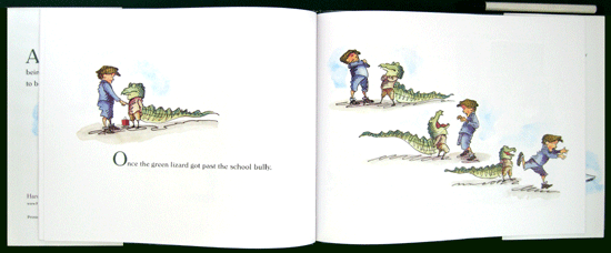 In rhyming couplets, Rylant expertly unfolds a quirky tale about a boy who is "tired of being a boy" and "hope[s] to be somebody new." He gets his wish when a package with an alligator suit arrives on his doorstep. Rylant's elegant writing and understated humor are matched perfectly by Goode's watercolor illustrations. Goode's generous use of white space focuses our attention on the characters that she imbues with copious charm and personality. The witty language and engaging, dynamic pictures, as well as the warmly nostalgic atmosphere, will attract parents and children alike. What's more, its whimsy and fancy extend to the final page: The alligator boy does not have a change of heart and decide to turn back into a boy. Neither is the story revealed to have taken place in his imagination or his dreams. Instead, Rylant and Goode close the story with a picture of their main character asleep on his mother's lap, his alligator tail hanging down from the chair, and the reassuring message that his is "a good green life for an alligator boy." |