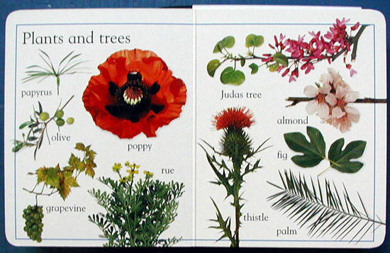 A board book introducing words found in the Bible in categories such as food, animals, clothes, plants, and colors. |