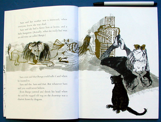 Samantha (known as Sam) is a fisherman's daughter who dreams rich and lovely dreams--moonshine, her father says. When her tall stories bring disaster to her friend Thomas and her cat Bangs, Sam learns to distinguish between moonshine and reality. A Caldecott Medal winner.