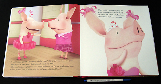 When Olivia learns that her role model, Prima Ballerina Penelope Twinkletoes, ¡°eats, drinks, and sleeps ballet,¡± Olivia vows to do the same. She practices the five ballet positions while setting the dinner table and even does arabesques while taking Baby William for a walk in the stroller. In fact, Olivia is so busy thinking about ballet that she misses a homework assignment and a playdate. What¡¯s an aspiring ballerina to do? Find a solution that is perfectly en pointe!