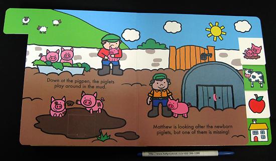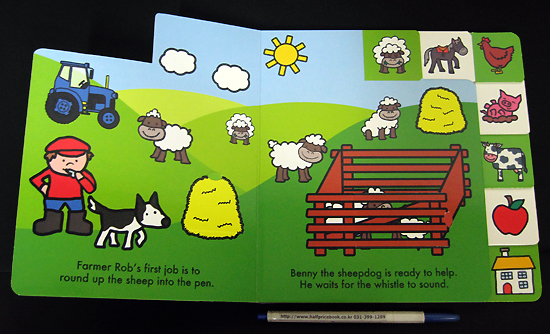 An interactive board book all about the farm, from animals to crops to farm machines. Each farm scene has fun flaps to lift which reveal hidden pictures underneath, and the illustrated tabs to the top and side of the book make page-turning easy for little hands. |