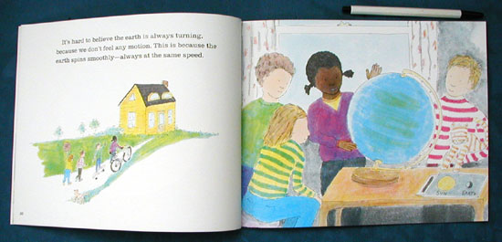 ¡®Accompanied by NASA photographs and Dorros¡¯s colorful, lively drawings, the text explains the Earth¡¯s rotation in clear and simple terms. An experiment using a lamp as the ¡®sun¡¯ further clarifies the principles introduced.¡¯ —BL.