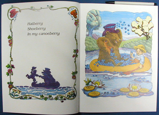 Hat and boot in hand, a boy and a bear set off on a delicious and raucous romp through Berryland. They frolic in strawberry fields forever, rumble and ramble in blackberry brambles, and topple their canoeberry with blueberries. Silly rhymes and a musical beat practically beg to be read aloud, preferably accompanied by dancing. New readers will giggle as they follow the fruit-frenzied pals on their berry adventures. Jamberry builds quickly in intensity and complexity, starting with "One berry, Two berry, Pick me a blueberry," and working up to "Raspberry, Jazzberry, Razzmatazzberry, Berryband, Merryband, Jamming in Berryland." Children will love discovering the subtle touches in Bruce Degen's illustrations: a frog climbing out of a hat, crackers and butter instead of lily pads, and a sign by the raspberry skating rink imploring skaters not to pick the jelly rolls planted nearby. Every character seems giddy with well-fed joy in this veritable jamboree of flavorful fun. Jamberry is a book best enjoyed on a gloomy day with a dollop of vanilla ice cream. (Baby to Preschool)
