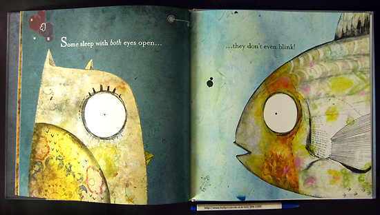 First published in England under the title ZZzzz: A Book of Sleep (2007), Na¡¯s wonderfully illustrated debut is one of those bedtime books that children will likely turn to again and again. The text is spare but informative, and soothing in its rhythms: ¡°When the sky grows dark / and the moon glows bright / everyone goes to sleep . . . except for the watchful owl.¡± In the double-page spreads that follow, Na presents a variety of animals at rest (¡°Some sleep peacefully alone, / While others sleep all together, huddled close at night¡±). However they sleep, these animals are always being observed by that ¡°watchful owl,¡± and children will enjoy finding him tucked between two huddling penguins or perched on the branch of a distant tree. There¡¯s no way to miss him when he comes face-to-face with a fish whose eyes are open when asleep; their close-ups, in profile, make them seem startled to see each other and showcase Na¡¯s playful use of texture, color, and unlikely patterns. The striking deep-blue of Na¡¯s nighttime gives way to bright sun at the end of the book, and finally ¡°the tired owl¡± gets his turn to sleep.