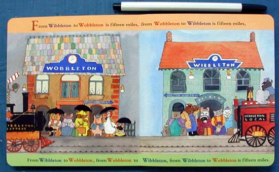 Part of "The Mother Goose" collection, the selections in this small board book are taken from the larger book by the compiler and illustrator. The book is sturdy and filled with bright, cheery pictures for each of the eight rhymes. Among the better known selections are the title rhyme; Hickory, Dickory Dock; Shoo Fly; Crooked Man; and Baa, Baa, Black Sheep. The latter features a male bunny and Wibbleton to Wobbleton's trains and waiting passengers are sheer delight. Once you have seen one, you will want the three other titles in the series (Wee Willie Winkie, Humpty Dumpty, and Pussycat Pussycat). 2001 (orig. 1996), Candlewick, $4.99. Ages 1 up. Reviewer: Marilyn Courtot |