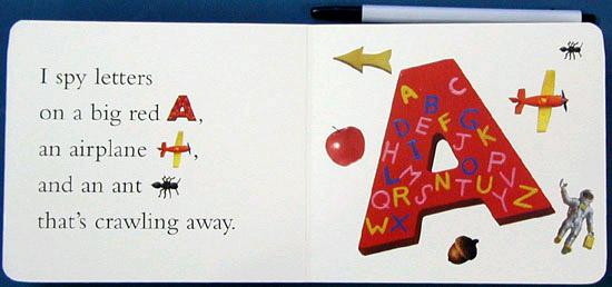 ¿À¸®Áö³Î I Spy ½Ã¸®Á Á» ´õ °£´ÜÇϰí ÀÛ°Ô ¸¸µç Ã¥ÀÔ´Ï´Ù. ¿ÞÂÊ ÆäÀÌÁö¿¡´Â ¾ËÆÄºª°ú ÇØ´ç ¾ËÆÄºªÀ» Æ÷ÇÔÇÏ´Â ´Ü¾î ¹× ¹®ÀåÀÌ ÀÖ°í ¿À¸¥ÂÊ ÆäÀÌÁö¿¡´Â ã¾Æ¾ß ÇÒ ¾ËÆÄºª ±×¸²ÀÌ ÀÖ½À´Ï´Ù. ÀÌ »çÁø¼Ó¿¡¼ ¿ÞÂÊ ÆäÀÌÁö¿¡ ³ª¿Â ¾ËÆÄºªÀ» ã¾Æ³»´Â °ÔÀÓÀ» ¾î¸° ¾ÆÀÌ¿Í ÇÔ²² Áñ±æ ¼ö ÀÖ½À´Ï´Ù.