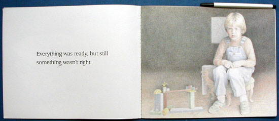 A realistic picture book of the finest kindsoft spoken, simple but allusive, and child centered. When Ezra's crib is moved into Ben's room, Ben sets out to make a private place where he can be alone. Ben's denim overalls, strap-closed sneakers, plastic dinosaurs, and box of raisins identify him as a toddler of the '80s, but his simultaneous need for a place of his own and yet his loneliness are timeless developmental challenges. Titherington's color pencil drawings, closely cropped to focus on Ben's expressive face, are realistic but not overwhelmed with detail. Her pictures and story are as inseparable as two-ply knitting yarn. Both lead young readers to find a resolution for themselves based on Ben's complex and contradictory feelings. Rhythmic short sentences encourage reading aloud and reading on one's own. Drawings take up the entire facing page. This is a sensitive, beautifully made book.