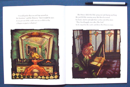 Will Scieszka, who set the record straight in his bestselling The True Story of the Three Little Pigs, let the Frog Prince and the princess who kissed him live happily ever after? Well, maybe--but first the two must weather various marital difficulties. She hates the way he hops around on the furniture instead of slaying dragons, and he complains that she never likes to visit the pond anymore. The bug-eyed, long-tongued prince decides that he will be happy only if he becomes a frog once again, so he runs off in search of a witch to do the job. On the way, he encounters a trio of eccentric hags preoccupied with the plights of other fairy-tale characters, as well as a fairy godmother who is practicing turning various objects into carriages. Though their coloring is somewhat somber, Johnson's ( No Star Nights ; The Salamander Room ) stylized, sophisticated pictures add to the keen humor of this revisionist revelry. Ages 3-8.