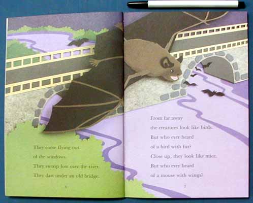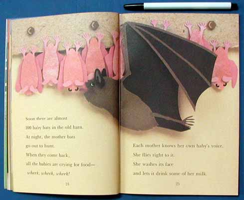 The colorful cut-paper illustrations will attract beginning readers and the flowing, fact-fill text will intrigue them with basic bat data. - Beverly Kobrin