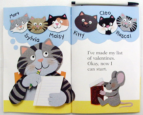 Minky the cat and best friend Mouse are back together again--this time they're making Valentine's Day cards for all of Minky's friends. First they gather scissors, glue, colored paper, and markers. Then they make a list. Minky and Mouse make cards with lace, glitter, and even ribbon. And when they're all done, Minky surprises Mouse with a very special Valentine's Day card. Judith Moffatt creates this third book in the series using her unique cut-paper illustrations and rhyming text. |