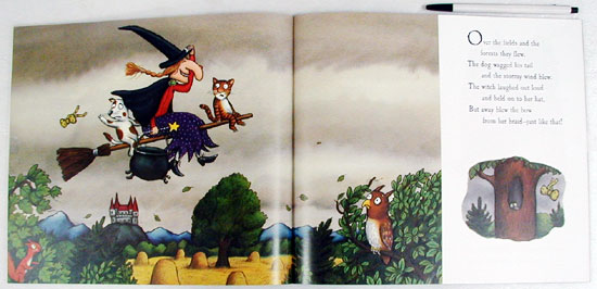 The witch and her cat are happily flying through the sky on a broomstick when the wind picks up and blows away the witch's hat, then her bow, and then her wand! Luckily, three helpful animals find the missing items, and all they want in return is a ride on the broom. But is there room on the broom for so many friends? And when disaster strikes, will they be able to save the witch from a hungry dragon? Illustrated by Axel Scheffler