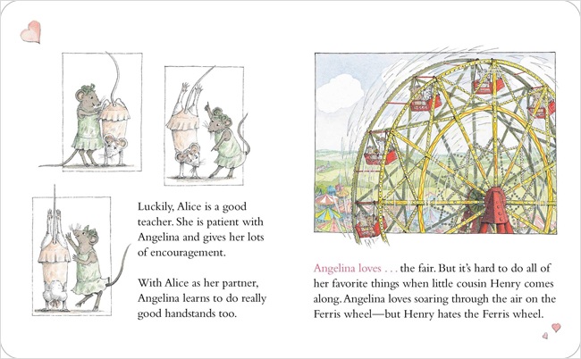 Angelina Ballerina loves lots of things! There¡¯s her family and dancing of course-with her ballet class at Miss Lilly¡¯s ballet school. And cartwheeling around the playground with her BFF, Alice. Fans of Angelina will love reading about everything Angelina loves (and probably things they love, too!)