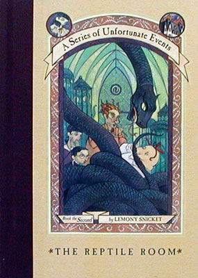 Within the pages of this novel, readers will discover one of the books upon which the movie Lemony Snicket's A Series of Unfortunate Events is based: The Reptile Room. Like the movie, this book tells an unhappy tale about three very unlucky children, who despite being pleasant lead unpleasant lives. From the very beginning of this volume, when the children are driving down a bad-smelling road toward a house full of mysterious beasts, continuing on to the last page of this distressing story, disaster lurks at their heels. Unlike the movie, however, this book does not contain moving pictures.