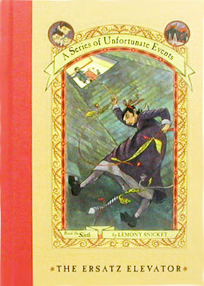 A Series of Unfortunate Events chronicles the perilous adventures of the Baudelaire children, thirteen-year-old Violet, twelve-year-old Klaus, and toddler Sunny. They were orphaned when their wealthy parents died in a tragic accident. Their parents' bank places them with a series of totally unsuitable guardians, from whom they must always make their escape. The evil Count Olaf lusts after their inheritance and continually tries to capture them. In every book in the series, he appears in a disguise that no adult can penetrate, yet the children always know it is he. In The Ersatz Elevator, the incompetent Mr. Poe takes the orphans to their latest guardians, Jerome and Esme Squalor, who live in the penthouse of a very tall building with no working elevator. The Squalors slavishly follow what is in style, and Esme is the city's sixth most important financial advisor. The children find that Olaf has disguised himself as Gunther, Esme's auctioneer, and they learn that he has brought two of the Quagmire triplets, Duncan and Isadora—their third sibling died a few books back—and is holding them captive at the bottom of the elevator shaft. Before the Baudelaires can rescue their friends—also rich orphans—Olaf takes them away and runs off with Esme, his former student. Books in this series are reminiscent of Victorian melodrama. They are full of anachronisms, and the people and events are completely outlandish—readers must suspend disbelief and go along for the ride. Younger teens with a lively sense of the ridiculous will appreciate the preposterous plots and predicaments, and older teens might enjoy the wordplay as evidenced in some of the characters' names. For others, asmall dose of Snicket will go a long way. Reading the books in order—beginning with The Bad Beginning (HarperTrophy, 1999), The Reptile Room (1999), The Wide Window (2000), The Miserable Mill (2000), and The Austere Academy (2000)—is preferred, but one will not feel lost by starting with any. Libraries already owning the series in their children's departments will not need an additional set, except perhaps for larger facilities. Middle schools with generous budgets also might want to acquire the books.