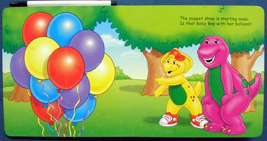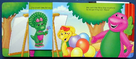 Barney and his pals are putting on a puppet show. When the curtain slides open, so does the book and children can take a peek at what's going on behind the scenes. Color illustrations throughout. |