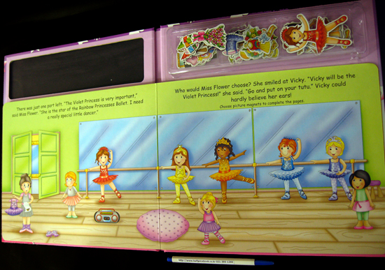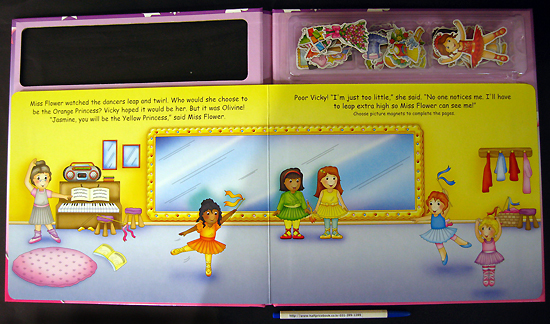 The dancers at Miss Flower's ballet school are getting ready to perform a ballet called the Rainbow Princesses, but who will get cast in each of the seven leading roles? Follow Vicky, the littlest ballerina as she does her best to become a Rainbow Princess.