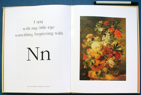 "I spy with my little eye something beginning with A..." Even the very youngest art lovers can spy out the apple in Magritte's Son of Man through the zigzags in de Geest's Portrait of a Child. Interact with twenty-six of the world's greatest paintings in this educational, entertaining, and beautiful pairing of a classic game with timeless art.
