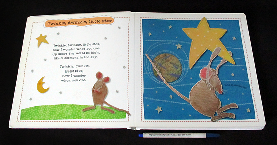 New nursery rhyme collection with beautiful, hand-stitched illustrations.Kate Toms Nursery Rhymes is a wonderful new collection of favorite nursery rhymes combined with Kate Toms-- beautiful, hand-stitched illustrations. This combination provides a lively and fresh interpretation of well-known nursery rhymes brought to life with illustrations full of whimsy and humor. This delightful book includes: Baa Baa Black Sheep, Humpty Dumpty, Here We Go -- Round the Mulberry Bush, Mary, Mary, Quite Contrary, Row, Row, Row Your Boat, Hickory Dickory Dock, This Little Piggy Went to Market, Pat-a-Cake, Itsy Bitsy Spider, and Three Blind Mice. This is the perfect collection for parents and children to share and enjoy together. |