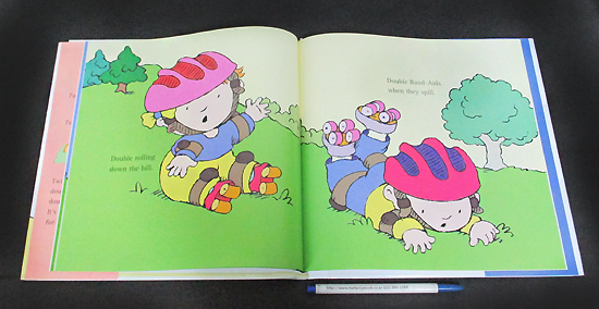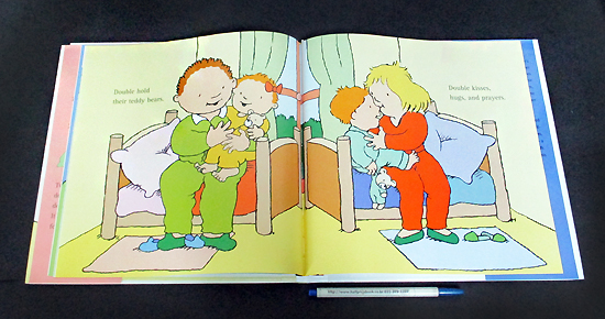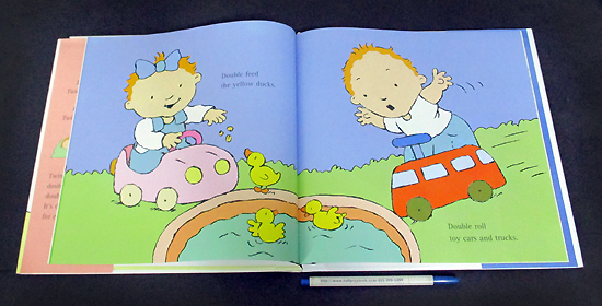A simple rhyme and lively, colorful, uncluttered illustrations make this picture book a joyful read-aloud for young children, twins or not. The boy-girl twins begin their journey as infants, but they progress through toddlerhood as the pages turn. The premise ("Double born. / Twice the blessing. / Double kids. / Twice the messing.") may be a little overdone, because, of course, twins don't do everything at the same time. But Courtin's big, active illustrations of the lovable kids busy together through the day will have young preschoolers pointing and joining in.