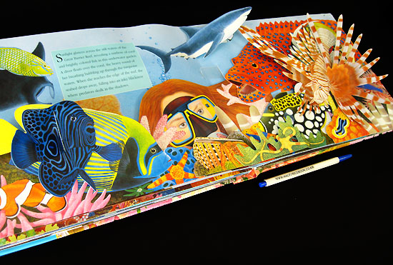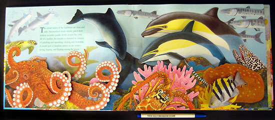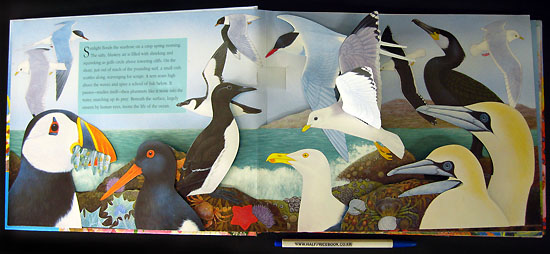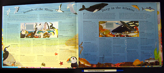 This gorgeously illustrated pop-up book takes readers deep beneath the water¡¯s surface where they are greeted with a symphony of new sounds. This aquatic adventure features a humpback whale that communicates with noisy roars and sighs and whose ¡°songs¡± carry for hundreds of miles underwater. Children also discover the playful chattering of dolphins, the boisterous honking of seals, and much more. Maurice Pledger¡¯s cunningly engineered pop-ups create an unforgettable 3-D seascape. |