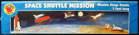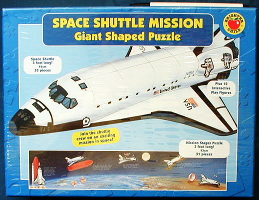 This package includes: giant shaped space shuttle - 53 puzzle pieces; mission stages puzzle - 51 pieces; interchangeable nose cone - 16 pieces; 10 interactive play figures. Puzzles measure over 3 feet long. |