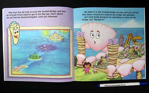 A mean octopus has dumped garbage all over Mermaid Kingdom! The only way to save the mermaids is to find the magic crown! Come along with everyone's favorite explorer, Dora, as she crosses the Seashell Bridge, goes through Pirate Island, and then goes to the Silly Sea. Will Dora be able to save her ocean friends? |