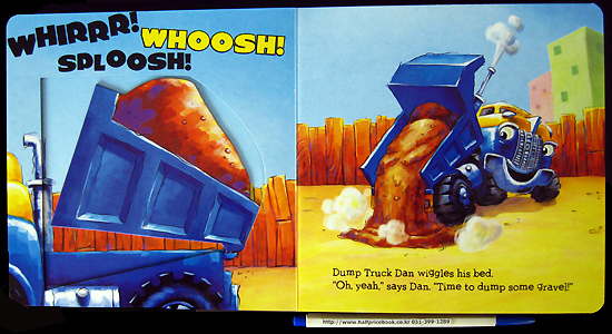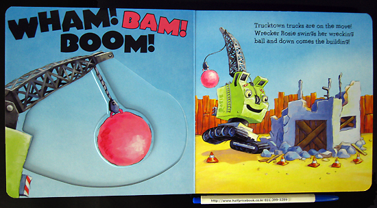 Rita, Dan, Max and Ted are on the move in Trucktown! Kids will have hands-on fun with a movable part on each spread! Swing Wrecker Rosie's wrecking ball, spin Monster Truck Max's wheel, dump gravel from Dump Truck Dan's bed, and move Tow Truck Ted's hook up and down as he saves a good friend! |