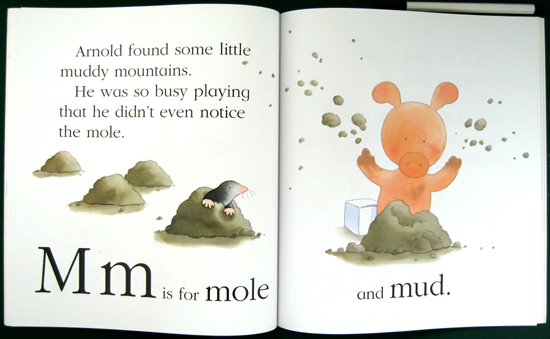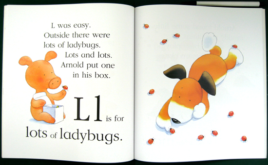 Here, Kipper and his piglet friend Arnold set off through the pages collecting animals and items to represent each letter. It's a charming and humorous adventure, as the subtitle suggests. They start with "a is for ant," but it won't stay in the "b for box," so eventually we get "e for empty." Those kinds of connections make this a fun and satisfying book.