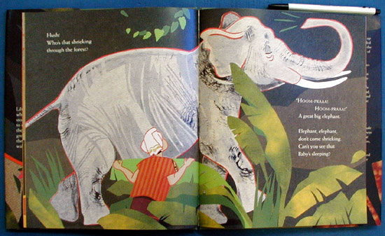 Lilting verse and bold, whimsical pictures tell the story of one mother's efforts to quiet the animals - from the smallest mosquito to the great big elephant - as their sounds threaten to wake her baby. But is Baby asleep? Let's see who is asleep - and who isn't!