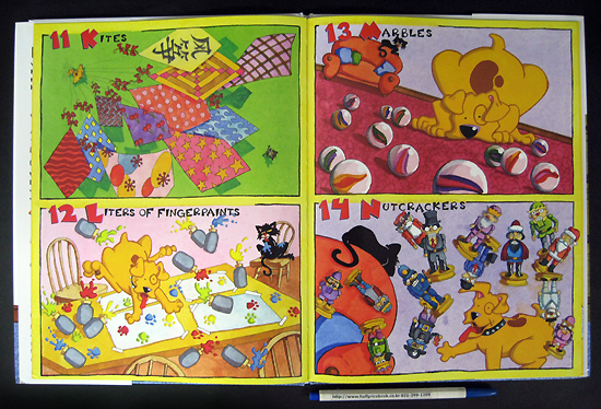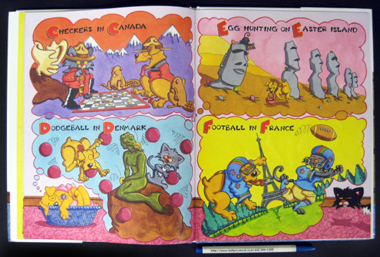 Poor, poor Puppy: Kitty isn't interested in playing, so all puppy's left with are: 1 Airplane, 2 Balls, 3 Cars, 4 Dolls... and 22 other toys. When he's done, Puppy's so tired, he takes a nap--and dreams of playing apple bobbing in Antarctica, Baseball in Brazil, Checkers in Canada, Dodgeball in Denmark... and 22 other games. Who else but Nick Bruel could combine the alphabet, a counting game, a whirlwind geography course, and a screamingly funny story... all in 40 pages?