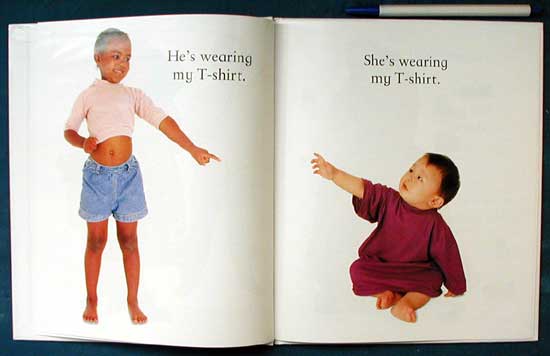 The crisp photographs of kids and their clothes fill every page. The text is fairly bland, just observations on what the kids are donning and where they may be going in their clothes, but the photographs and inexpensive price make this book quite attractive. Note: the Briticisms may confuse some readers. Other titles in the series are Farm Animals, Funny Faces, Babies, Food, Wild Animals, Kittens, Toys, Diggers and Dumpers, Peek-a-boo!, Puppies, and Hop Skip, Jump. - Marilyn Courtot |