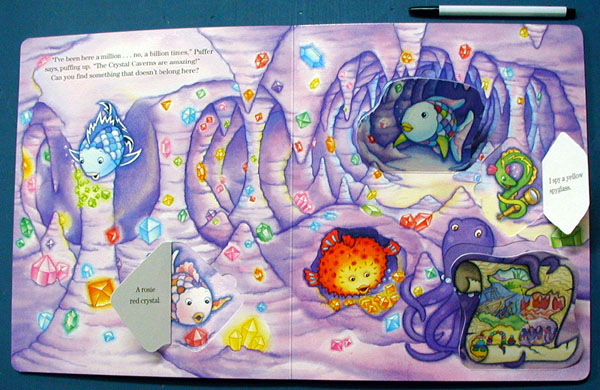 Go treasure hunting under the flaps of this oversized lift-the-flap concept-based board book for clues and help lead Rainbow Fish and his friends to their hidden treasure. |