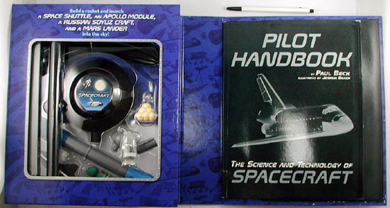 Who hasn't dreamed of being an astronaut? Now kids have a chance to blast off into space without ever leaving planet Earth. The Flight Test Lab Spacecraft kit features a fun, informative book filled with color illustrations, diagrams, and facts. It explains the history of space exploration, how rockets work, and how a spacecraft's engine accelerates to a speed of 25,000 mph to break Earth's gravitational pull, and gives young scientists an opportunity to build five different spacecraft varieties and then watch them take flight. Young readers will also learn about the seven Apollo missions, NASA's two Mars rovers, and the first space station. With this fantastic hands-on tool, kids can apply their flight training to build their own rocket with launch pad and attach different payloads. |
