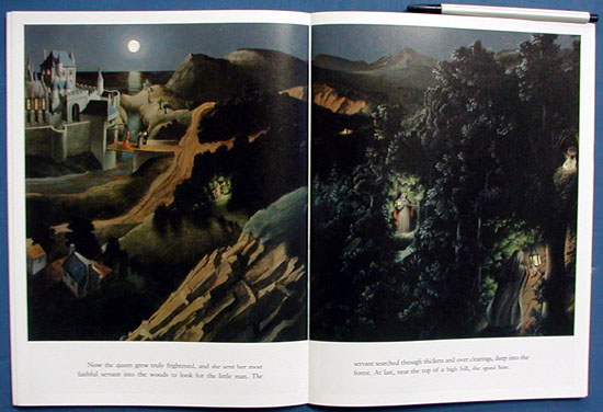 The funny little man who spun straw into gold and helped the beautiful miller's daughter marry the king gives her three days to guess his name or he will take away her child. Reprint. Caldecott Honor Book. |