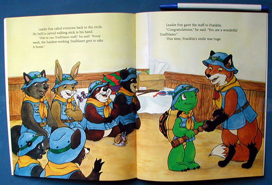 Based on the books by Paulette Bourgeois. Franklin is joining the Trailblazers, and he can hardly wait to start earning badges. At his first meeting, he learns the Trailblazer promise, the Trailblazer call, and the Trailblazer handshake. But when he finds out that it takes months to earn even one badge, his enthusiasm begins to falter. Nevertheless, Franklin enjoys the activities, the snacks, and the games. He even gets an unexpected reward for his help in cleaning up and decides that the best thing about Trailblazers is that he has years of fun ahead as he works towards earning all his badges. |
