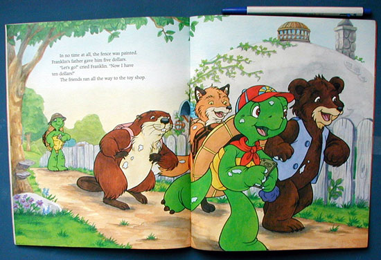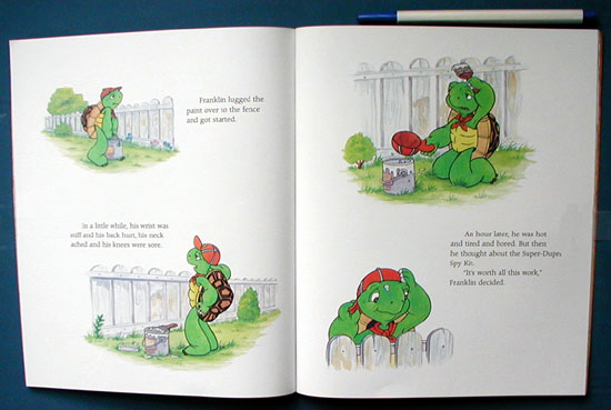Franklin only has half the money he needs to buy the Super-Duper Spy Kit of his dreams. His father makes a deal: he will give Franklin the rest of the money he needs if Franklin will paint the fence. Franklin agrees, but soon finds painting to be hard work. So he enlists Beaver and Fox to help by making a deal with them. That deal leads to another, and another until finally the fences is painted and Franklin's father pays him. In the end, Franklin finds he has enough money for two spy kits - one for himself and one for his best friend, Bear. |