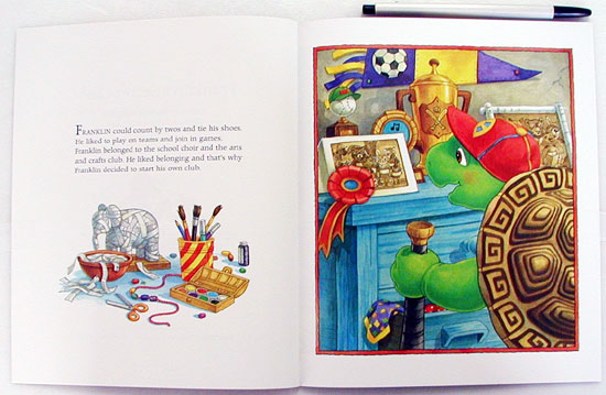 Franklin loved belonging to clubs, so he decided to start his own. His hideaway only had room for Bear, Snail, and Rabbit, so after asking them to join his Secret Club, Franklin forgot about the rest of his friends. When Beaver asked to join the club, Franklin kindly explained to her that there was no more room. Feeling left out, Beaver started her own club and planned many exciting adventures. Soon Franklin, Bear, Snail, and Rabbit felt left out. They realized how Beaver must have felt. So they came up with a happy solution: Join the two clubs together! A great lesson for the young reader-things are more fun when everyone is included. Brenda Clark's colorful and realistic illustrations add to the appeal of the book. - Mary Hamilton |