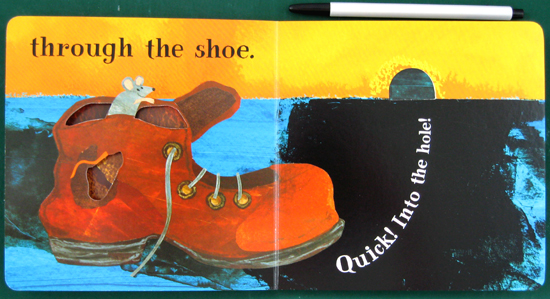 Petr Horacek returns with a pair of novelty board books that will have youngsters eagerly turning the pages. In the first, Run, Mouse, Run!, an orange-tailed mouse scurries over and around furniture to avoid being captured by a cat. In the second, Bird, Fly High, a mother bird searches for breakfast for her three babies. The die-cut pages add playfulness and action to the watercolor and cut-paper art. |