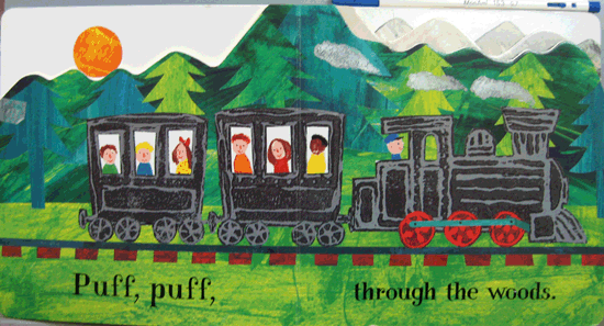 ¿Â °¡Á·ÀÌ ±âÂ÷¸¦ Ÿ°í ¿©ÇàÀ» ¶°³³´Ï´Ù. Ãâ¹ß! Choo Choo Puff Puff(Ä¢Ä¢ÆøÆø)~ ½£À» Áö³ª°í, ´Ù¸®¸¦ °Ç³Í ÈÄ, Clack Clack Rumble Rumble(´úÄÈ´úÄÈ)~ ÅͳηΠµé¾î¼·´Ï´Ù. Toot Toot (»§»§)~ ÄÄÄÄÇÑ Åͳο¡¼ ±âÀû¼Ò¸®¸¦ ¿ï¸®³×¿ä. ÅͳÎÀ» ³ª¿Â ÈÄ ¹àÀº ÇØ°¡ ºñÄ¡´Â °÷À¸·Î ±âÂ÷´Â ´Þ·Á °©´Ï´Ù. ±×¸®°í ¸¶Ä§³» ±âÂ÷°¡ µµÂøÇÑ °÷Àº...
