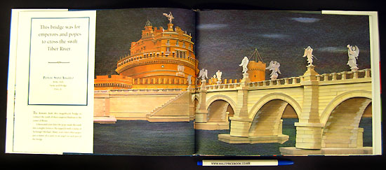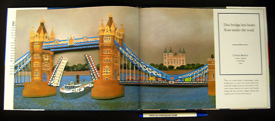 Everyone knows bridges are to cross -- to get to the other side. But did you know that some bridges carry llamas loaded with firewood, some let people dance over lazy rivers, some were forts for defending castles, and some were crossed by emperors and popes? From a simple log to woven webs of steel, bridges reflect our values, our lifestyles. Feast your eyes on these bridges from around the world, all painstakingly created with intricately cut paper, and you will come to realize that crossing is only one reason for having a bridge. |