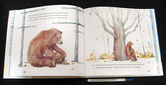 Bear found his friend Mouse, but Mouse was busy gathering seeds and didn't have time to listen to a story. Then Bear saw his friend Duck, but Duck was getting ready to fly south. What about his friend Toad? He was busy looking for a warm place to sleep. By the time Bear was through helping his friends get ready for winter, would anyone still be awake to hear his story?