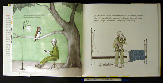 With quiet affection, this husband-and-wife team tells the story of a zookeeper whose devotion is repaid when he falls ill. On most days, the angular, elderly Amos rides the bus to the zoo, plays chess with the elephant ("who thought and thought before making a move"), sits quietly with the penguin, and spends time with his other animal friends. But when Amos catches a cold, the animals ride the bus to pay him a visit, each, in a charming turnabout, doing for Amos whatever he usually does for them. The elephant sets up the chessboard; the shy penguin sits on the bed, "keeping Amos's feet warm." Newcomer Erin Stead's elegant woodblock prints, breathtaking in their delicacy, contribute to the story's tranquility and draw subtle elements to viewers' attention: the grain of the woodblocks themselves, Amos's handsome peacock feather coverlet. Every face--Amos's as well as the animals'--brims with personality. Philip Stead's (Creamed Tuna Fish and Peas on Toast) narrative moves with deliberate speed, dreaming up a joyous life for the sort of man likely to be passed on the street without a thought.