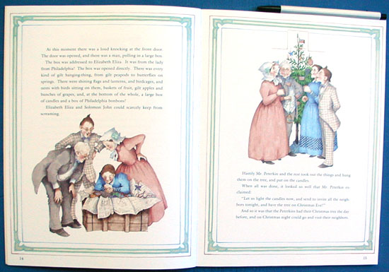 This cheerful collection of Christmas melodies, poems and stories eschews the Victoriana frequently associated with the season in favor of American customs and traditions. From Laura Ingalls Wilder's chapter on her first Christmas tree to Langston Hughes's "Carol of the Brown King," Goode's focus is on "the distinct expression" Americans have given to the holiday, and her festive illustrations span various historical periods. In addition to traditional favorites ("Jingle Bells" and Clement Moore's famous poem), there are many happy surprises, such as "Brer Rabbit's Christmas" and a folktale from upstate New York about the origins of "A Baker's Dozen." The book's design is uncluttered and spacious, and Goode ( The Diane Goode Book of American Folk Tales and Songs ) differentiates the entries by wrapping each one--her special "gifts"--in a unique ribbon-like border. All ages.